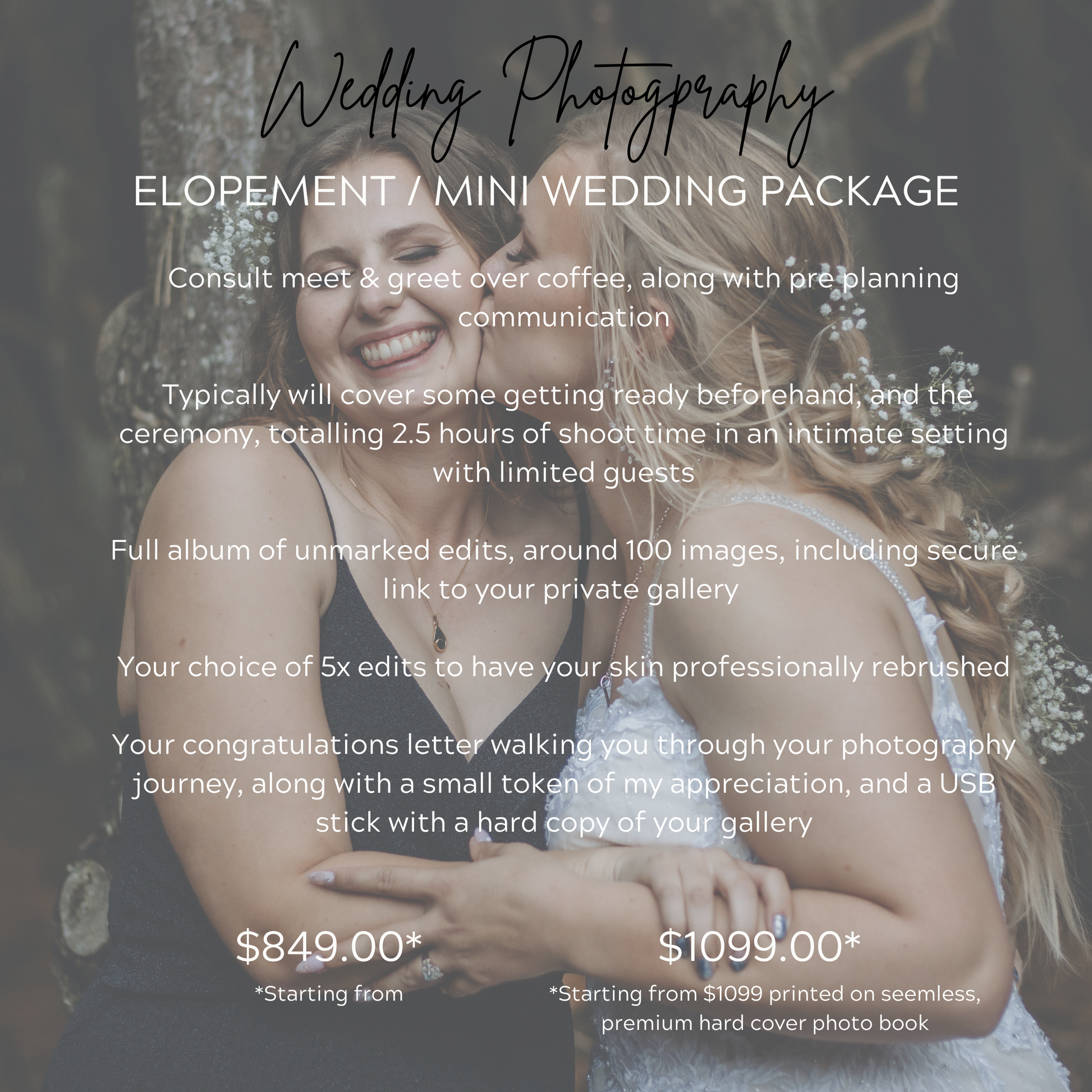If you're having either an elopement or mini wedding, then expense and crowd control are going to be high on your priority list. So I have a mini package just for you!